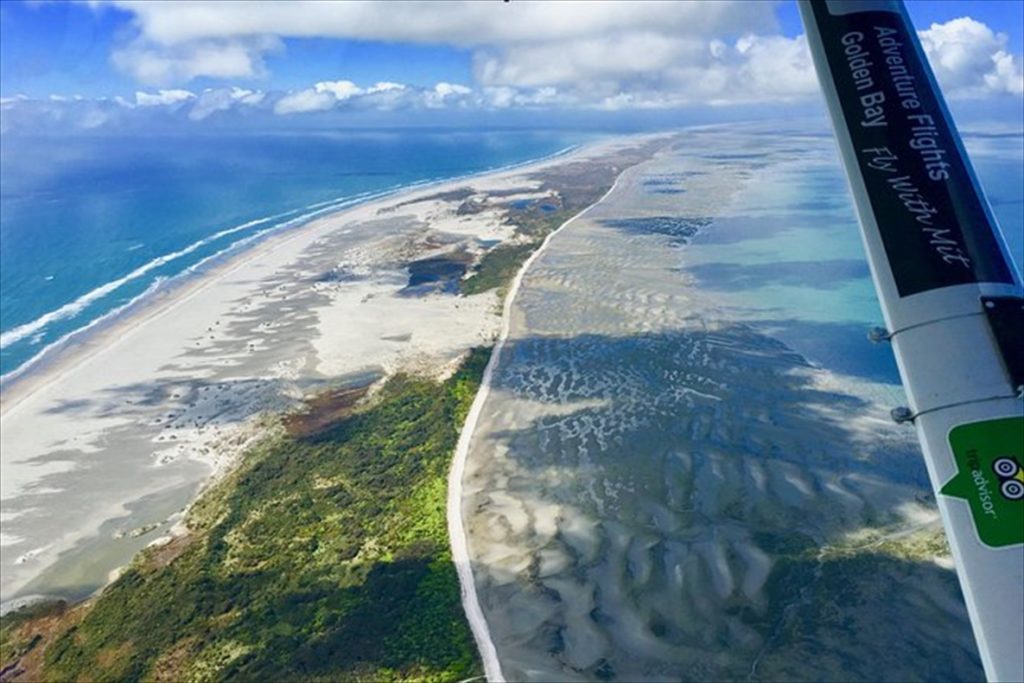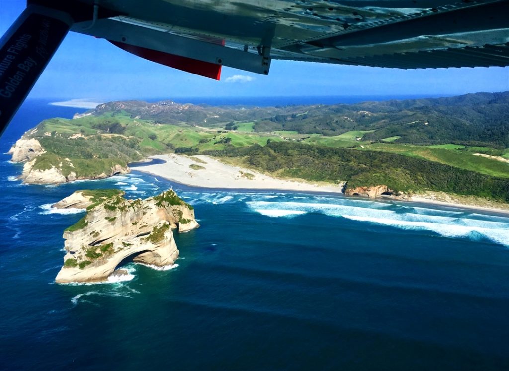 Our scenic flight special shows you the best of Golden Bay from the air. You follow the Bay’s sheltered shoreline westward before crossing the famous sea arches at Wharariki Beach. Trace the dunes and lakes the length of Farewell Spit to the lighthouse then heads to the Golden sand beaches and vivid waters of the northern Abel Tasman coastline to Awaroa Bay before heading back over our lodge to Takaka Airport.